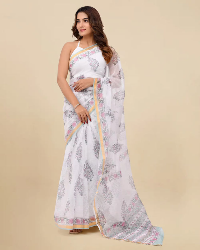 Delicate, airy, and beautifully handwoven, Kota Doria sarees are a summer essential for lovers of fine Indian textiles. Originating from Kota, Rajasthan, this fabric is created with a unique blend of cotton and silk and is distinguished by its square-like “khat” pattern that gives it a gossamer appearance. Despite their lightweight nature, these sarees are remarkably durable and rich in texture.